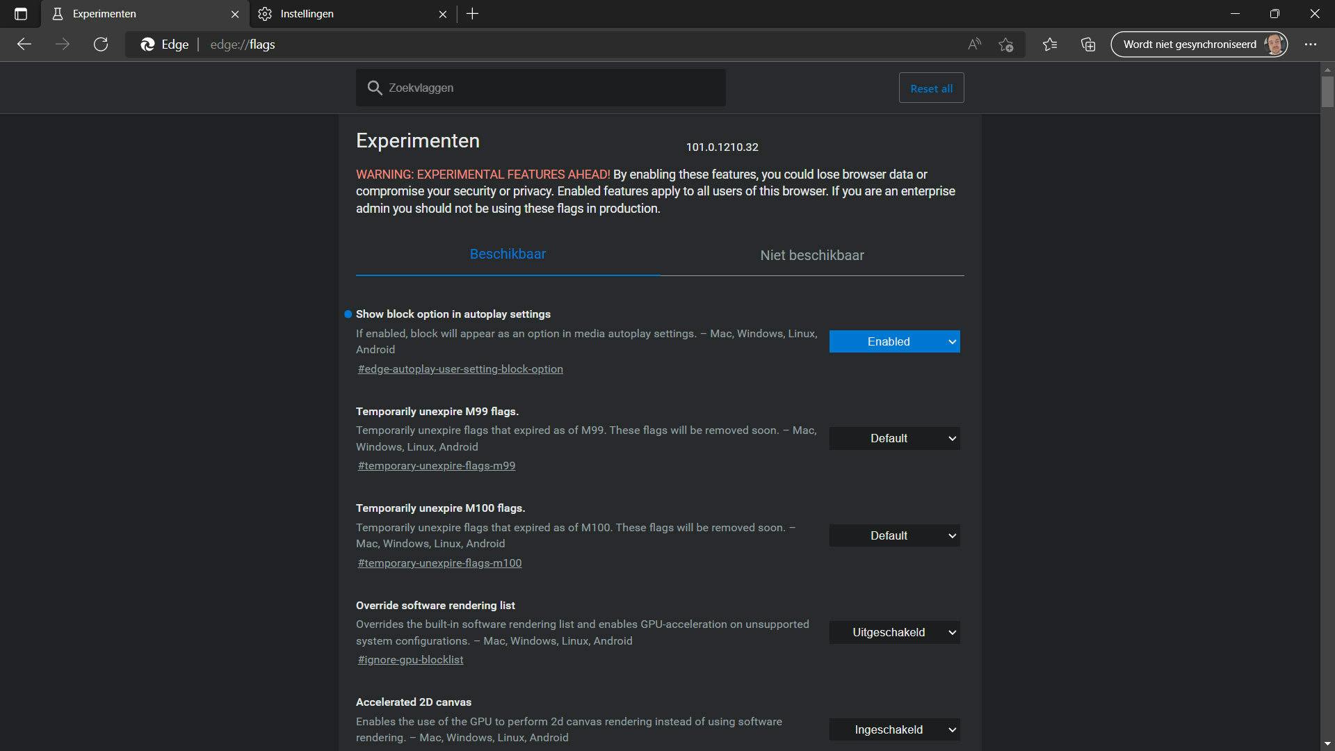 Je kunt er gelukkig voor kiezen dat video’s helemaal niet meer automatisch aangaan. Hoe krijg je dat precies voor elkaar? Open de Microsoft Edge-browser en typ in de url-blak edge://flags in. Als het goed is vul de browser de zoekoptie automatisch aan. Vul nu in de balk Zoekvlaggen de volgende regel tekst in: Show block option in autoplay settings (je kunt op op ‘autoplay’ zoeken). Rechts zie je een dropdownmenu staan, waar nu Default staat. Klik erop en kies voor de optie Enabled.