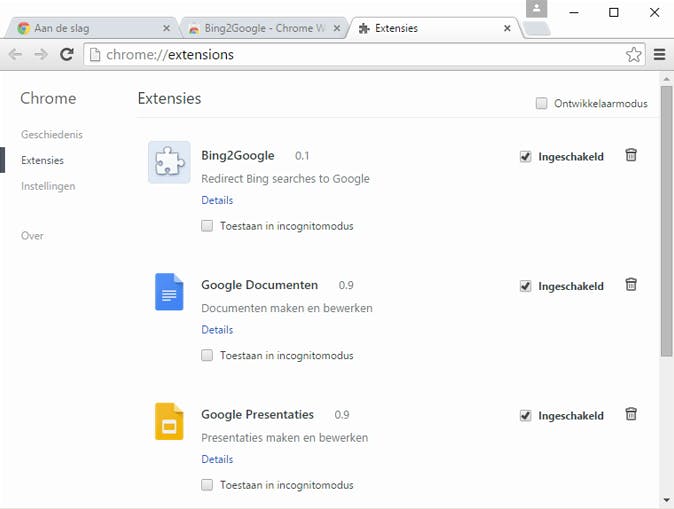 De zoekfunctie blijft echter van Bing, maar via een omweg kun je ook Google gebruiken in de Windows-zoekfunctionaliteit. Je hebt hier echter wel Googles Chrome-browser als standaardbrowser voor nodig. Installeer vervolgens de Bing2Google-extensie. Wanneer je nu op het web zoekt met de Windows-zoekfunctionaliteit, opent een Chrome-browservenster met de zoekresultaten in Google.