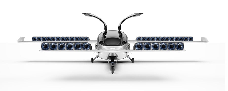 Het Duitse Lilium is een taxi zonder wielen. Hij vliegt bovendien niet op benzine of kerosine, want hij heeft alleen elektriciteit nodig. Het voertuig stijgt op met 35 rotors, en laat zich dus het beste vergelijken met een drone. Hoewel hij, als hij eenmaal is opgestegen, gebruikmaakt van vleugels om vooruit te komen. Net als Uber denkt Lilium aan ongeveer eenzelfde prijs per “rit” als in een gewone rijdende taxi.