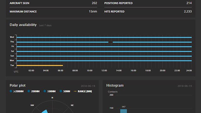 Klik op Show statistics. In het vak bovenin lees je hoelang de ontvanger online is en vanaf welke datum. Bij Daily availability wordt vermeld hoeveel uur per dag de ontvanger actief is. Vindt er bijvoorbeeld een onderbreking plaats in de upload, dan wordt de streep onderbroken. Het vak eronder, Polar Plot, geeft aan in welke richtingen vliegtuigen zijn gespot, en op welke afstand zij zich begaven. In het vak Aircraft seen vind je het aantal gespotte vliegtuigen van de afgelopen zeven dagen.