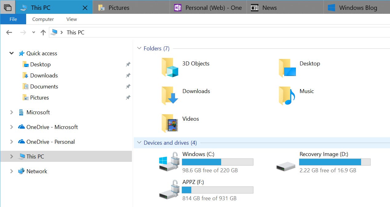 Een van de belangrijkste vernieuwingen zijn Sets, de officiële benaming voor tabbladen in Windows-mappen. Net zoals je tabbladen opent in een browser, zo kun je straks ook verschillende mappen naast elkaar open hebben staan zonder dat het allemaal aparte vensters zijn. Wel zo overzichtelijk. Niet alleen mappen, maar ook programma's kunnen zo naast elkaar open staan. Bijvoorbeeld een tabblad met de Verkenner en een tabblad met de Edge-browser of een Word-document.