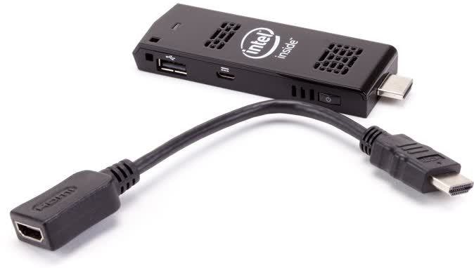 De allerkleinste pc's zoals deze Intel Compute Stick zijn ongeveer net zo groot als een usb-stick.