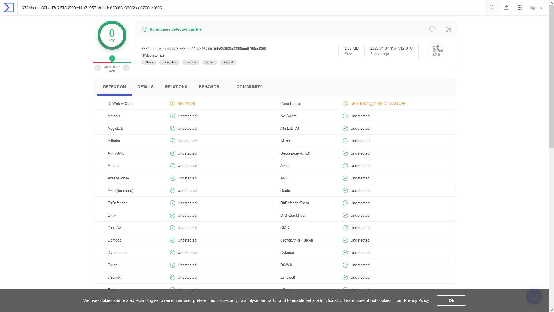 Maar wat als één of twee scanners zeggen iets te vinden? Dan is het goed om naar de details te kijken. Zijn het scanners van een gerenommeerd merk? Zo zijn er bijvoorbeeld scanners die proberen dreigingen met kunstmatige intelligentie te herkennen en die techniek is nog niet echt volwassen. Ze waarschuwen dan ook voor bijna elk onbekend programma.