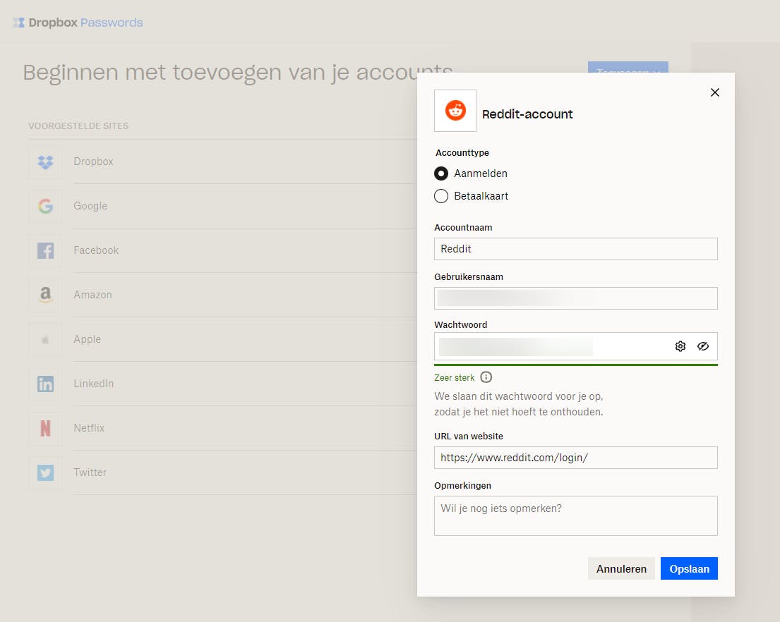 Wachtwoorden veilig bewaren in Dropbox Password