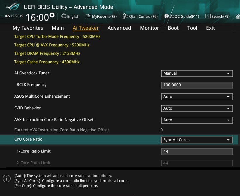 Bij het overklokken is een goede koeling uiterst belangrijk. De standaardkoeling heeft vaak al moeite genoeg met de temperatuur van de cpu op standaardsnelheid. Ga je extreem overklokken, dan raden we aan om een aparte koeler aan te schaffen en daarbij is een waterkoeling zowel beter als duurder dan luchtkoeling. Overklokken doe je in kleine stapjes. Hoe meer tijd je neemt voor het geleidelijk aan opvoeren van de cpu, hoe beter je bent verzekerd van een stabiel systeem. Ga naar de geavanceerde instellingen van de uefi en zoek naar termen als Base Clock (vaak afgekort als bClk) en Multiplier. De meeste processoren werken met een Base Clock van honderd en vermenigvuldigen die met een bepaalde factor om tot de kloksnelheid te komen. Het is gebruikelijk dat een processor twee versnellingen kent: de ruststand en de turbo. Beide standen hebben een multiplier en het is de multiplier van de turbo die je moet verhogen. Zoek de instelling CPU Core Ratio en daaronder staat een aantal velden afhankelijk van het aantal kernen die je processor telt. In die velden staat een getal, dat is de multiplier, die je stapsgewijs kunt verhogen. Laat de optie Sync All Cores aan staan zodat dezelfde multiplier op alle kernen wordt toegepast. Wijzig de instelling vCore of Core Voltage die op Auto staat in Manual om te vermijden dat het moederbord teveel spanning op de cpu zou zetten. Sla de wijzigingen op en herstart de pc. AMD en Intel hebben ook hun eigen tooltjes om te overklokken.