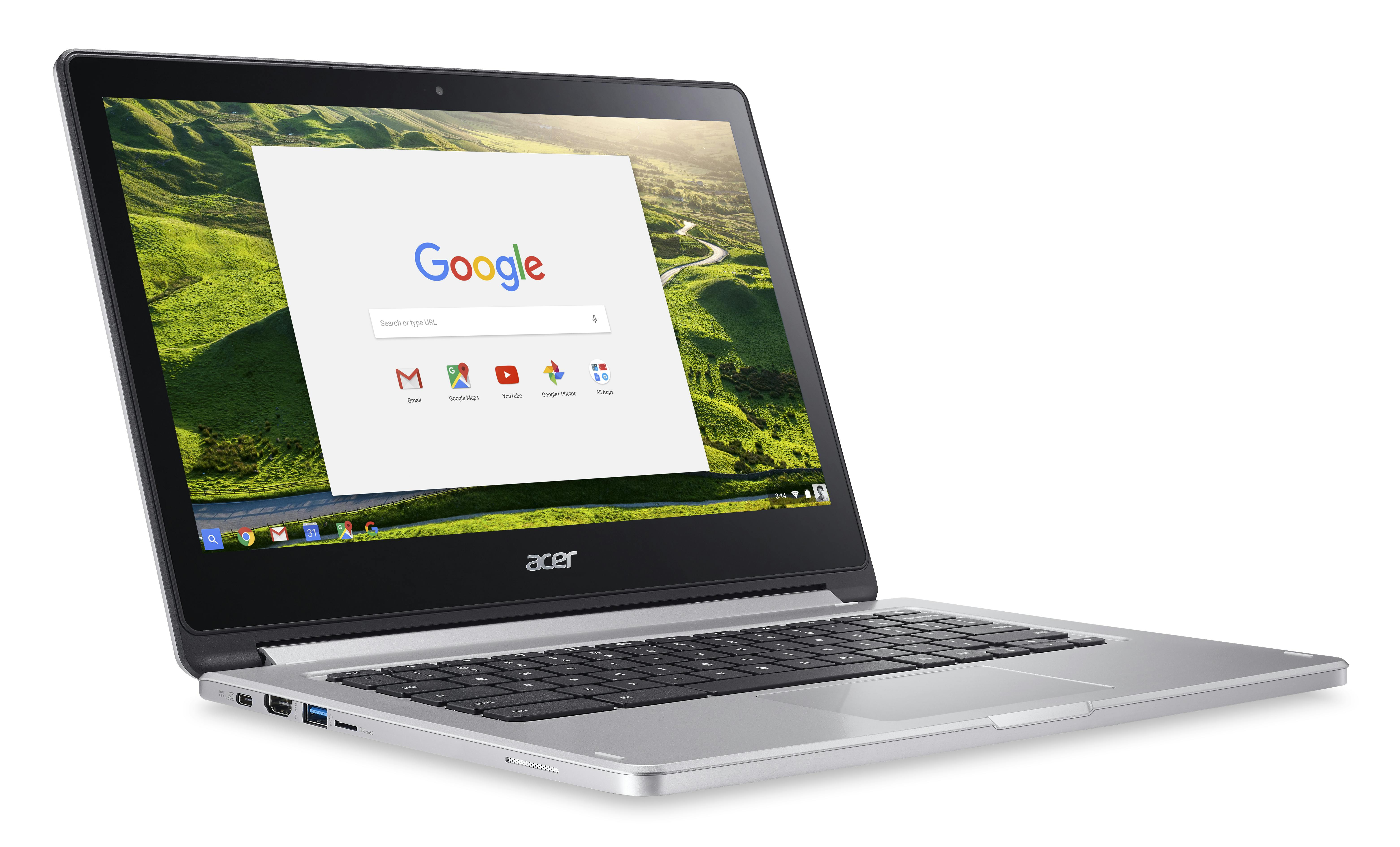 De Acer Chromebook R13 is op papier de beste Chromebook, maar ook veruit de duurste. 449 euro is een flink bedrag voor een laptop met Chrome OS, al krijg je er wel een fraai en uitgebreid model voor terug. Zo heeft het apparaat een metalen behuizing die premium aanvoelt. Naast de gebruikelijke aansluitingen bevat ie een nieuwe usb-c-poort om op te laden. Je kunt de Chromebook in verschillende standen plaatsen en hem bijvoorbeeld als grote tablet gebruiken. Dat is mogelijk door het touchscreen van 13,3 inch, dat een scherpe Full HD-resolutie en dankzij een IPS-paneel goede kijkhoeken heeft. Er is ook ondersteuning voor Android-apps, maar die komen op dit schermformaat niet helemaal tot hun recht. De interface is vaak te klein en kan niet goed geschaald worden. Omdat de Play Store op Chrome OS nog in bèta verkeert, is het mogelijk dat dit nog verbetert.