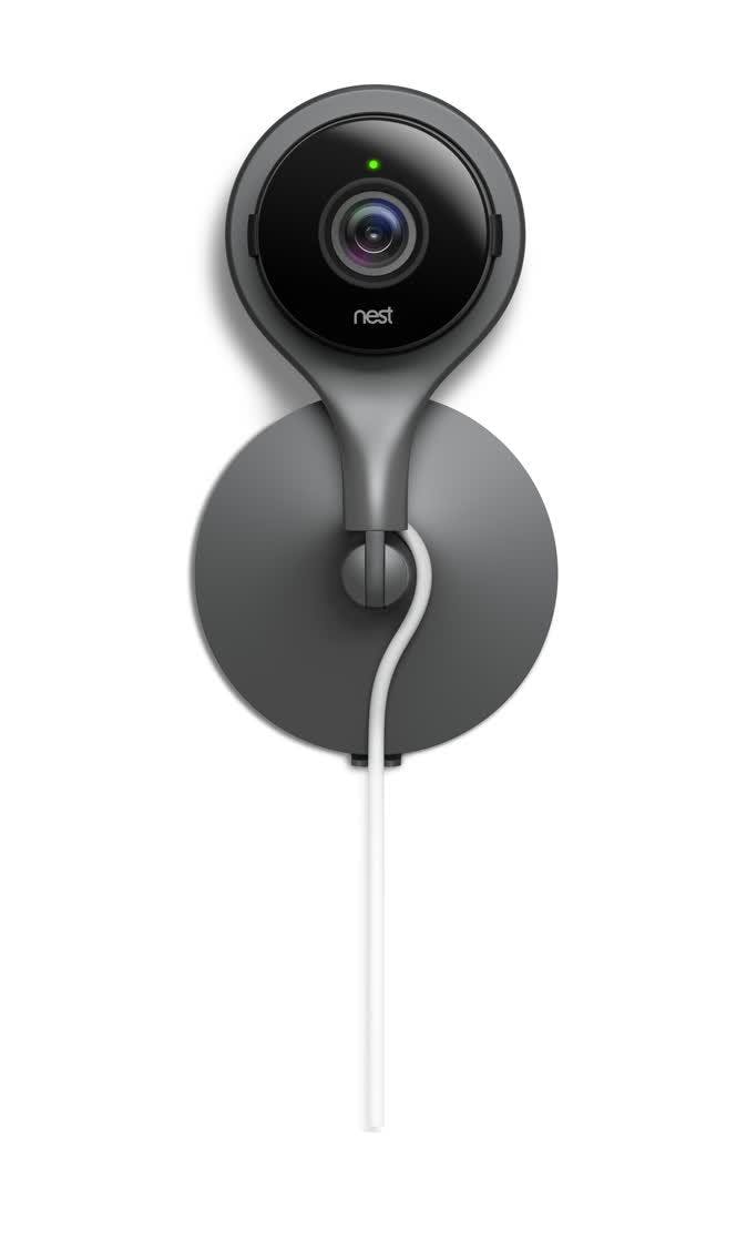 De voet van de Nest Cam is magnetisch.De Nest Cam is de enige 1080p-camera uit de test en dus zeker het apart vermelden waard. Het is een cloudcamera en hij kan worden geïntegreerd met de andere producten van Nest: de thermostaat en het rookalarm. Hij werkt ook samen met Philips Hue, waarbij de bewegingsdetectie van de camera aan de lampen wordt gekoppeld, iets wat in onze ervaring zeker nog niet foutloos werkt.