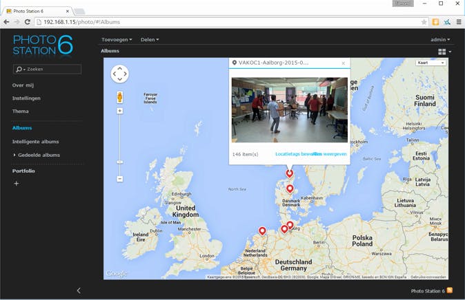 EXIF-informatie, zoals de locatie waar een foto is genomen, blijft behouden. En je kunt bijvoorbeeld foto's op een landkaart weergeven of sorteren op bestemming. De beelden delen kan zowel op het thuisnetwerk, maar ook met familie en vrienden ver weg via internet. Bovendien hebben de NAS-fabrikanten eigen apps voor iOS en Android uitgebracht (en Synology en QNAP ook al voor Windows Phone), waarmee je foto's die je onderweg maakt direct naar je NAS kunt uploaden.