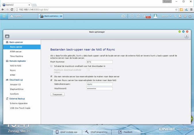 In elk geval is er altijd wel een back-upprogramma waarmee je bestanden en mappen kunt back-uppen naar de NAS. Maar ook de NAS zelf heeft weer een back-upfunctie zoals Rsync waarmee je de data op de NAS direct naar een andere NAS kunt kopiëren of synchroniseren. En wil je de gegevens die je op de NAS hebt staan liefst buiten je eigen huis bewaren, kijk dan eens naar één van de cloudback-ups die vaak worden aangeboden of die je bijvoorbeeld via een HiDrive-package kunt toevoegen.