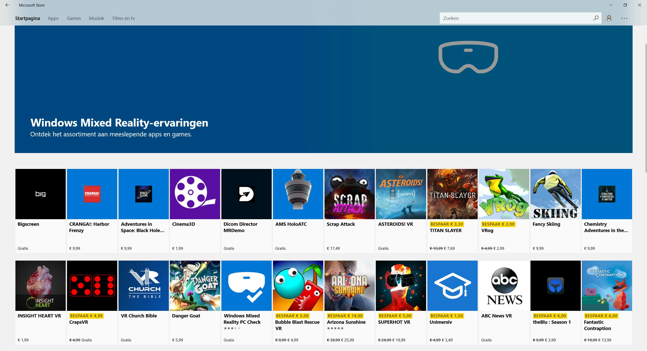 Wanneer je de besturing een beetje onder de knie hebt, kun je de Microsoft Store openen om daar verschillende mixed reality-apps te downloaden. Ook deze downloadwinkel vind je in een van de digitale kamers. Eenmaal geïnstalleerd open je de apps tevens vanuit virtual reality, je hoeft de bril dus niet af te zetten. We zetten hier tot slot enkele van de leukste apps en games voor je op een rij. Veel vr-plezier!