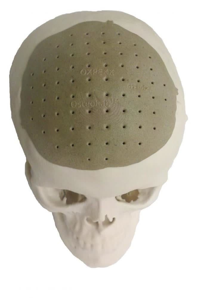 Een deel van een schedel, geprint met een 3D-printer. (foto: Oxpekk)
