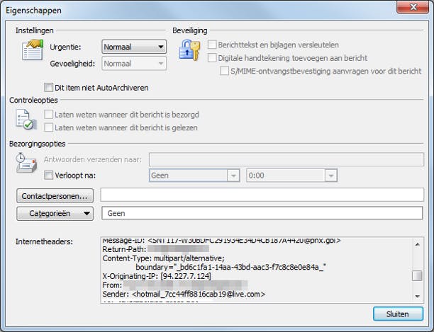 Live Hotmail stuurt altijd ook het IP-adres van de verzender mee.