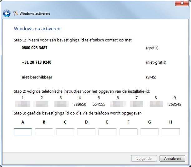 Activeren via de telefoon: ook dan wordt een 'vingerafdruk' van uw hardware gemaakt.