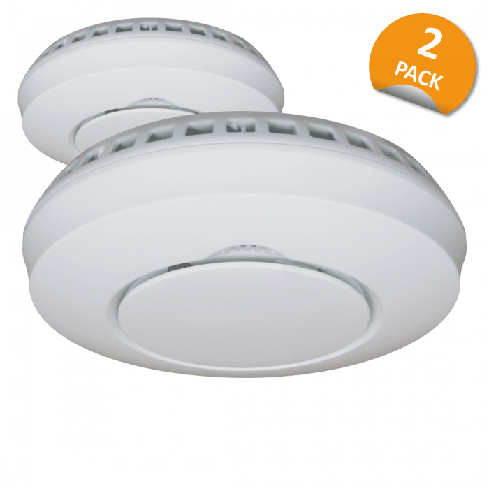 Deze rookmelders van ELRO gaan op het gebied van veiligheid een stapje verder, want je kunt ze namelijk via wifi onderling verbinden. Zodra één melder rook of hitte boven de 54 graden constateert, geven alle gekoppelde rookmelders een alarmsignaal van 85 decibel. De meegeleverde AA-baterijen houden het volgens de fabrikant minimaal twee jaar vol. Overigens is de FZ5002R compatibel met diverse beveiligingsproducten van ELRO, zoals een koolmonoxide-, hitte- en watermelder.