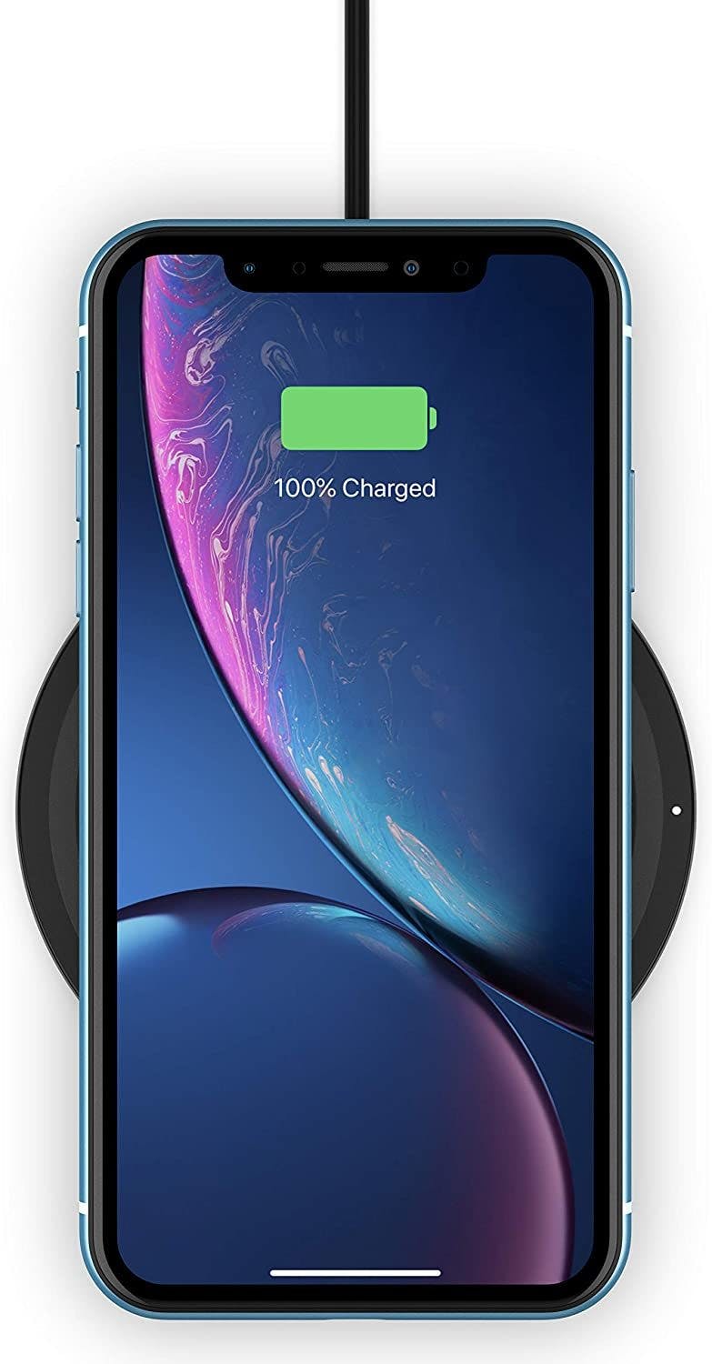 Steeds meer mobiele apparaten ondersteunen draadloos opladen via de Qi-standaard. Dit betaalbare laadstation met een vermogen van vijf watt voorziet in deze behoefte. Leg de smartphone, tablet of draadloze oordopjes op het plateau en het oplaadproces begint direct. Een witte led-indicator geeft aan of het mobiele apparaat op de juiste plek ligt. Het werkt onder meer met recente iPhones en Samsung Galaxy-toestellen. Houd er rekening mee dat Belkin geen voedingsadapter meelevert. Wens je snellere laadtijden, dan is er ook een laadstation met een vermogen van tien watt verkrijgbaar.