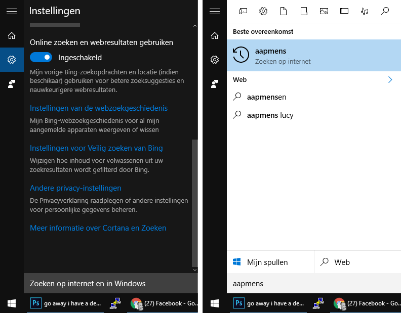 Het is niet de bedoeling om onze mening over de kwaliteit van Bing aan je op te dringen. De kans is echter groot dat je de populaire zoekmachine van Google toch al verkiest boven Bing. Bing wordt op meerdere plekken in Windows 10 standaard aangeroepen. Bekende voorbeelden zijn de zoekopdracht vanuit het startmenu (zoeken op web), de browsers Internet Explorer en Edge, Cortana (nog niet beschikbaar in Nederlandse Windows-versies) en de ingebouwde zoekfunctie van Office. De besproken oplossingen in dit artikel bieden allemaal een ‘Bing in de ban’-garantie.