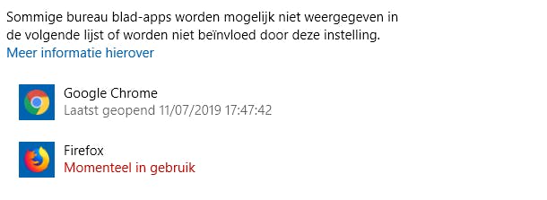 Wanneer een app op dat ogenblik toegang heeft tot je webcam, zul je dat hier lezen in rode tekst: Momenteel in gebruik. Als je wilt weten welke toepassingen recent toegang hebben gehad tot de webcam dan merk je dat hier in het grijs bij Laatst geopend op. Je leest de naam van applicatie die webcam heeft gebruikt en krijgt het tijdstip te zien wanneer de webcam actief was.