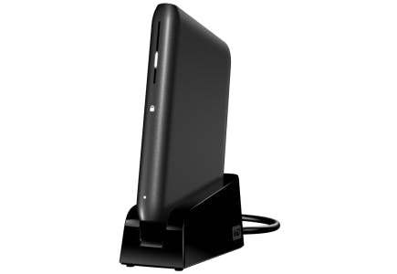 De My Passport Elite van Western Digital is behalve voor gebruik onderweg ook handig voor thuis. Western Digital levert namelijk een docking-station mee zodat de schijf een net plekje op uw bureau heeft.