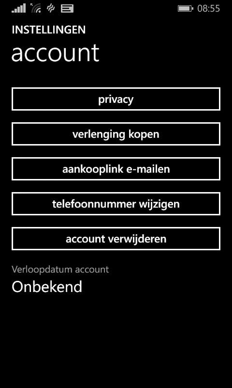 Interessanter is echter wat er gebeurt in een update op Windows Phone. Daar is de looptijd van een levenslang abonnement veranderd naar 'Onbekend'. Ook zijn er twee knoppen toegevoegd aan het accountscherm: 'Verlenging kopen' en 'Aankooplink e-mailen'