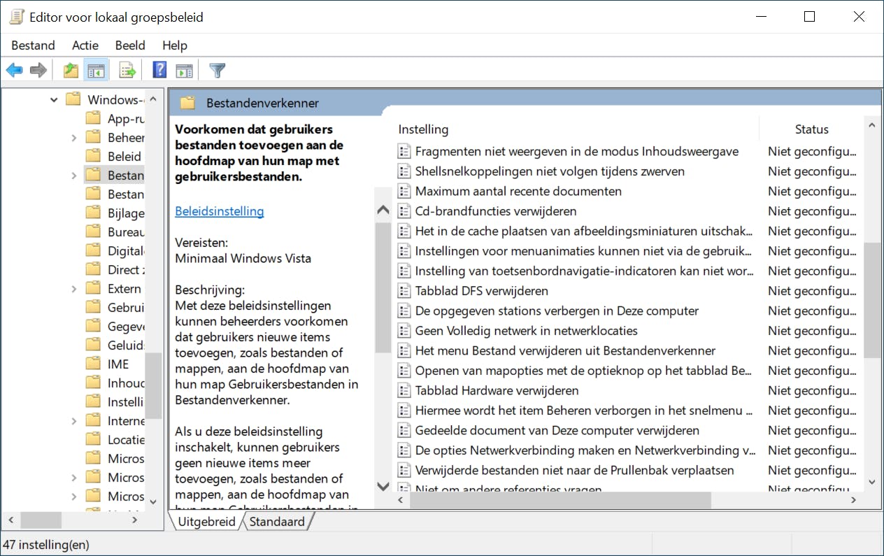 Een lange en weinigzeggende naam: de Editor voor lokaal groepsbeleid (open het Startmenu en typ Gpedit.msc). Toch is dit programma, dat je alleen aantreft in de Pro-variant van Windows 10, wel degelijk van nut. Het geeft toegang tot de meeste instellingen van Windows vanuit één centrale omgeving. Het is vooral geschikt voor wie graag zoveel mogelijkheid vrijheid heeft bij het aanpassen van het gedrag van Windows.
