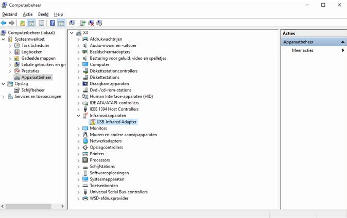Apparaatbeheer laat alle hardware zien, ook die waarvan het systeem ziet dat die niet goed werkt.