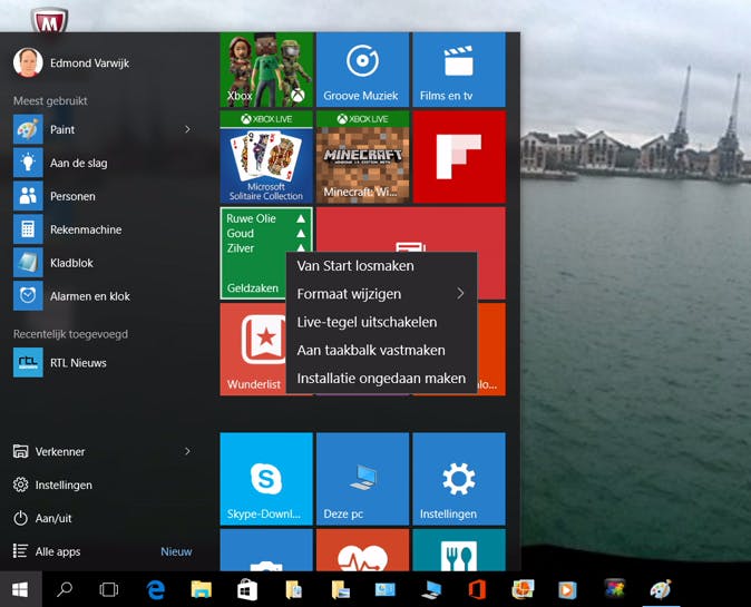 Heb je bijvoorbeeld niets met de financiële informatie van de Geldzaken-app, dan kom je die app standaard toch op veel plaatsen tegen. Hij staat bijvoorbeeld in de lijst met apps in het startmenu, en er is ook een eigen live-tegel. Wil je de app verwijderen, klik dan met de rechtermuisknop op de live-tegel en kies Installatie ongedaan maken. Dit is de meest rigoureuze keuze, nu wordt de live-tegel uit het startmenu verwijderd én de app van de pc.