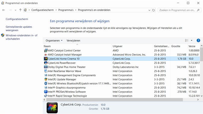 Behalve de apps, kunnen er ook programma's op de pc staan die je wilt verwijderen. Bijvoorbeeld programma's die na de upgrade minder goed werken, maar niet belangrijk genoeg zijn om de upgrade terug te draaien. Of programma's waarvoor een beter alternatief bestaat in Windows 10 zelf.