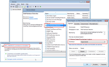 Als u een usb-stick of externe harde schijf netjes wilt verwijderen, opent u Start / Computer. Klik met rechts op de schijfletter van de usb-stick (bijvoorbeeld de G-schijf) en kies Uitwerpen om het apparaat veilig te verwijderen. Windows geeft na enkele seconden de melding dat de usb-stick veilig kan worden weggehaald. Het is echter mogelijk om deze foutmelding volledig uit te schakelen. Daarmee sneuvelen ook de ‘Automatisch afspelen’-opties. Klik op Start en type services.msc, gevolgd door een druk op Enter. Zoek in de lijst naar Shell hardware detection, klik met de rechtermuisknop op dit onderdeel en kies Eigenschappen. Verander de instelling Opstarttype van Automatisch naar Uitgeschakeld. Bevestig met OK en herstart uw computer. Vanaf nu toont Windows 7 geen ‘Automatisch starten’-vensters meer, en blijven foutmeldingen bij het verwijderen van een usb-apparaat achterwege.