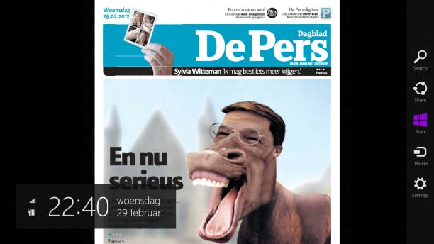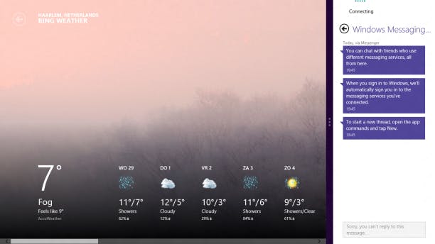 Een andere nieuwe handigheid is dat u apps aan de zijkant vast kunt zetten (als een Charm). Zo hebt u een actueel overzicht van de ene app, terwijl u aan het werk bent in de andere app. We kunnen ons voorstellen dat het prettig is om altijd een actueel weersoverzicht of een chat aan de zijkant te hebben staan. Wanneer u deze functie op een tablet uitprobeert, wilt u wellicht niet meer terug naar een iPad of Android-tablet!