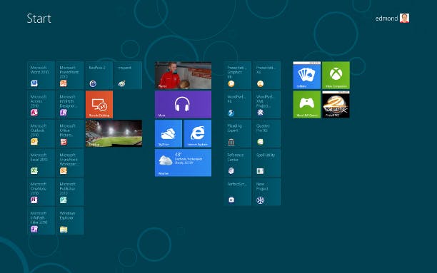 Voor de achtergrond van het startscherm kan gekozen worden uit zes designs en negen opvallend harde kleuren. Een eigen afbeelding selecteren als achtergrond is (nog) niet mogelijk. Elke tegel (tile) die u in de Metro-interface ziet, is een snelkoppeling naar een programma. Echte Windows 8-tegels hebben een egale kleur met daarop als tekst de naam van het onderdeel plus live-informatie uit dat programma. Zo laat de mail-tegel zien of er nieuwe berichten zijn en toont het weerprogramma het weer van een opgegeven locatie. Opties om de 'onderliggende' programma's te besturen, ontbreken echter volledig. Het is dus niet mogelijk om een muziekje of filmpje te starten of pauzeren met een druk op de tegel.