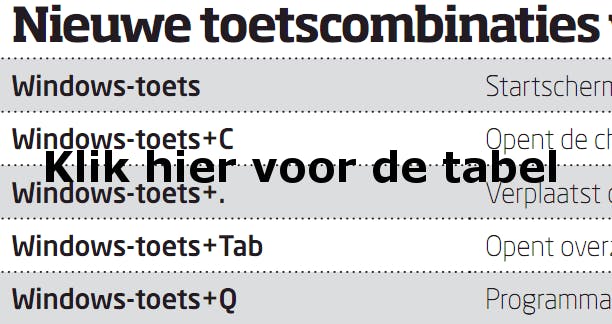 Windows 8 geeft de hoogste prioriteit aan aanraakbesturing en dat merken we. Het betekent echter niet dat we Windows 8 niet met muis en toetsenbord kunnen bedienen. Wel is het soms even zoeken naar de optimale methode of werkt het gewoon minder handig dan gehoopt. Een belangrijke toets is de Windows-toets. Hiermee kan altijd het startscherm geopend worden. In het startscherm is direct na het openen altijd de tegel linksboven geselecteerd. Met de pijltjestoetsen kan deze selectie worden veranderd, u ziet gelijk welke tegel dan wordt geselecteerd. Met een druk op Enter wordt het geselecteerde programma gestart. Zijn er meer tegels dan dat er in beeld passen, dan lopen deze rechts het beeld uit. Door de rechterpijltjestoets langer ingedrukt te houden of de muis verder naar rechts te bewegen, zorgt u ervoor dat het lint met tegels in beweging komt en de tegels die eerder buiten beeld vielen, zichtbaar worden. Nog handiger gaat het door het scrollwiel op de muis te draaien.