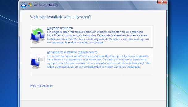 Om een schone installatie uit te voeren, kies je voor Aangepaste installatie.