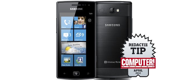 Bij de lancering van Windows Phone 7 bracht Samsung met de Omnia 7 een (toen) high-end-toestel op de markt. Windows Phone 7.5 is voor Samsung de gelegenheid om met een goedkoper toestel te komen. Dat goedkopere blijkt hem vooral in de materiaalkeuze van de behuizing en de schermgrootte te zitten, want de rest van het toestel is gewoon goed. Dit toestel heeft een AMOLED-scherm van 3,7 inch. AMOLED is door de goede zwartwaarde en felle kleuren uitermate geschikt voor Windows Phone. Toch heeft het gebruikte AMOLED-scherm ook een nadeel. De subpixels zijn namelijk niet volgens het RGB-principe gerangschikt. In plaats daarvan wordt een PenTile-rangschikking gebruikt, waarbij er in het scherm twee keer zoveel groene subpixels aanwezig zijn als rode of blauwe subpixels. Iedere pixel heeft dus niet de beschikking over een gelijk aantal rode, groene en blauwe subpixels, waardoor het beeld bij sommige kleuren een beetje korrelig oogt. Er zijn ook AMOLED-schermen - zoals Samsungs Super AMOLED Plus - die RGB gebruiken, onder andere de aanstaande Nokia Lumia 900 is hiervan voorzien. Opvallend voor een 'budgettoestel' is dat de Omnia W een accelerometer, gyroscoop en kompas alle mogelijke sensoren aan boord heeft. Ook een camera aan de voorzijde ontbreekt niet, waardoor dit een erg compleet Windows Phone-toestel is. Het enige nadeel dat we kunnen bedenken is dat de normale camera middelmatige foto's schiet. DIt is een erg goed toestel, zeker als u geen waarde hecht aan de camera.