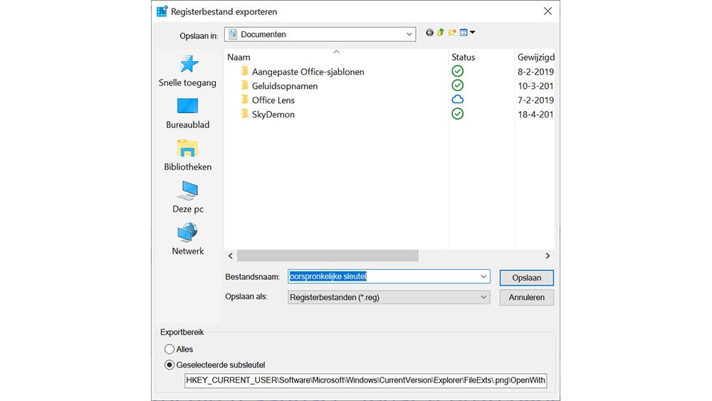 Voordat je dus een sleutel aanpast, klik je er eerst even op met de rechtermuisknop. Kies Exporteren. Geef de sleutel een goede naam en controleer in het vak Exportbereik of de optie Geselecteerde subsleutel is geactiveerd. Klik op Opslaan. Hierna verander je de betreffende sleutel. Nu je weet hoe het register globaal werkt, kijken we verder naar de mogelijkheden.