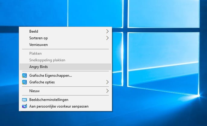 Klik op deze sleutel en kies Nieuw, Sleutel. Geef deze de naam command. Dubbelklik erop en geef bij Waardegegevens het pad en de programmanaam op van het programma (bijvoorbeeld C:\Windows\System32\Notepad.exe). Bevestig met een klik op OK. Klik nu met rechts op het bureaublad: je programma is zichtbaar.