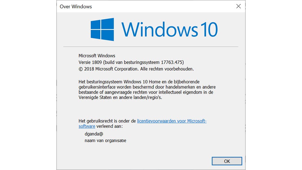 Heb je een computer overgenomen, dan bestaat de kans dat Windows in het venster Over Windows (dat je opent door in het Startmenu Winver te typen) een naam en bedrijfsnaam toont waar je niet tevreden mee bent. Deze gegevens kun je aanpassen via het register. Open de sleutel HKEY_LOCAL_MACHINE\SOFTWARE\Microsoft\Windows NT\CurrentVersion. Dubbelklik op RegisteredOwner en pas de naam aan.
