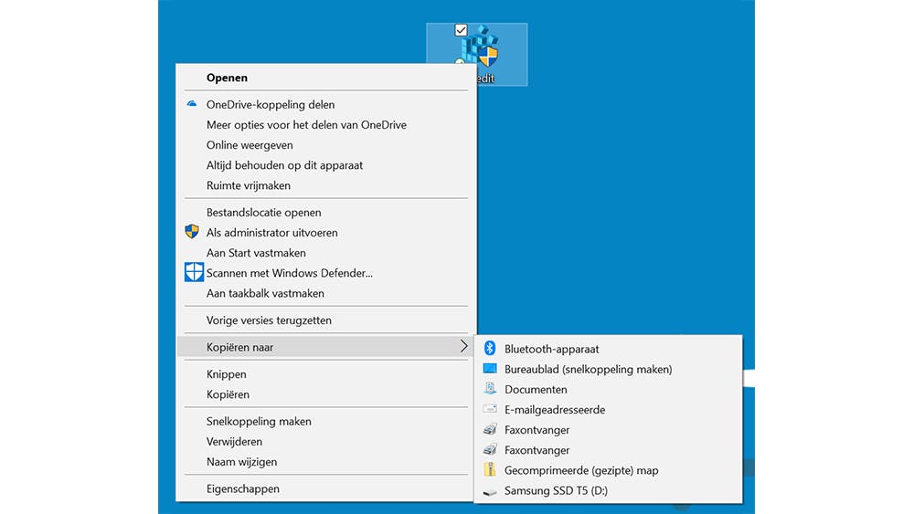 Geen behoefte aan de optie Kopiëren naar, die wordt getoond als je met de rechtermuisknop op een bestand klikt? Je kunt de optie via het register verwijderen. Ga naar de sleutel HKEY_CLASSES_ROOT\AllFilesystemObjects\shellex\ContextMenuHandlers\Send To. Dubbelklik op Standaard (rechts in het venster) en zorg ervoor dat het vak Waardegegevens leeg is. Klik op OK. De optie Kopiëren naarverschijnt niet meer.