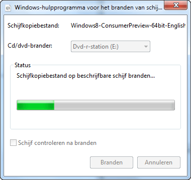 De meest gebruikte en voor de hand liggende methode is een installatie vanaf dvd. Om een dvd te branden, hebt u de iso-bestanden nodig. Deze kunt u downloaden van website van Microsoft of via de Windows 8 Consumer Preview Setup. Er is één productcode voor de bèta, die iedereen kan gebruiken. Als u de bestanden via de website downloadt, wordt de productcode op de website weergegeven, deze is dus niet op de dvd meegeleverd. Downloadt u het iso-bestand via het Setup-programma, dan krijgt u na het maken van het iso-bestand de productcode te zien.