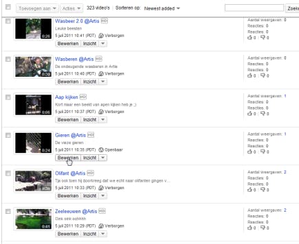 Naast uw video's kunt u zien of deze openbaar of privé zijn.