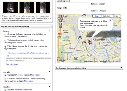 Om de privacyinstellingen aan te passen, klikt u onder de video op Bewerken. Ga naar het venster Opties voor uitzenden en delen en zet deze op de gewenste optie. U kunt uit drie verschillende opties kiezen. Openbaar: zo kan iedereen de video zien en deze wordt in de zoekresultaten van YouTube opgenomen. Verborgen: iedereen die de link heeft kan de video bekijken, maar deze wordt niet opgenomen in de zoekmachine van YouTube. Of Privé: alleen mensen die u toegang geeft kunnen het filmpje bekijken. Toegang geven kan door middel van een YouTube-gebruikersnaam of e-mailadres.