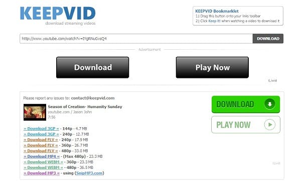 Keepvid is ook handig: gewoon vanuit je browser een YouTube url in de zoekbalk kopiëren en kiezen in welk bestandsformaat en in welke grootte je het filmpje wilt downloaden. Een kind kan de was doen. De filmpjes komen niet door op heel hoge resolutie, maar dat is voor heel veel YouTube filmpjes meestal geen probleem. Je hebt wel Java nodig.