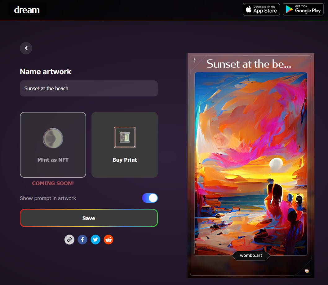 Kijk bijvoorbeeld eens bij Wombo Dream als je zelf wilt spelen met TTI. Hier kun je simpelweg een Engelse omschrijving invoeren en na het kiezen van een stijl krijg je binnen een minuut de gegenereerde afbeelding te zien. Wombo is snel en biedt een hoge resolutie.