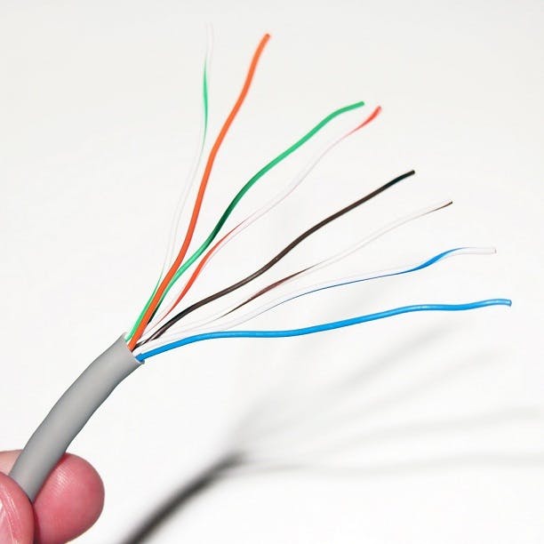In principe zijn er twee soorten kabels die je kunt maken, ‘gewone’ ethernetkabel en een crosslink-kabel. Welke kabel je wilt maakt wordt bepaald door de volgorde van de draadjes in de RJ45-stekker. Crossover-kabels worden eigenlijk alleen maar gebruikt wanneer je twee computers aan elkaar koppelt (zonder router of hub) en dat komt bijna niet meer voor. Om die reden maken we een gewone ethernetkabel. De volgorde van de gekleurde kabeltjes voor deze kabel is: oranje/wit, oranje, groen/wit, blauw, blauw/wit, groen, bruin/wit, bruin. Het heeft niet zoveel zin om helemaal uit te leggen waarom die volgorde zo is, belangrijkste is dat je die volgorde aanhoudt. Of zoals je ouders dat vroeger deden: omdat wij dat zeggen.