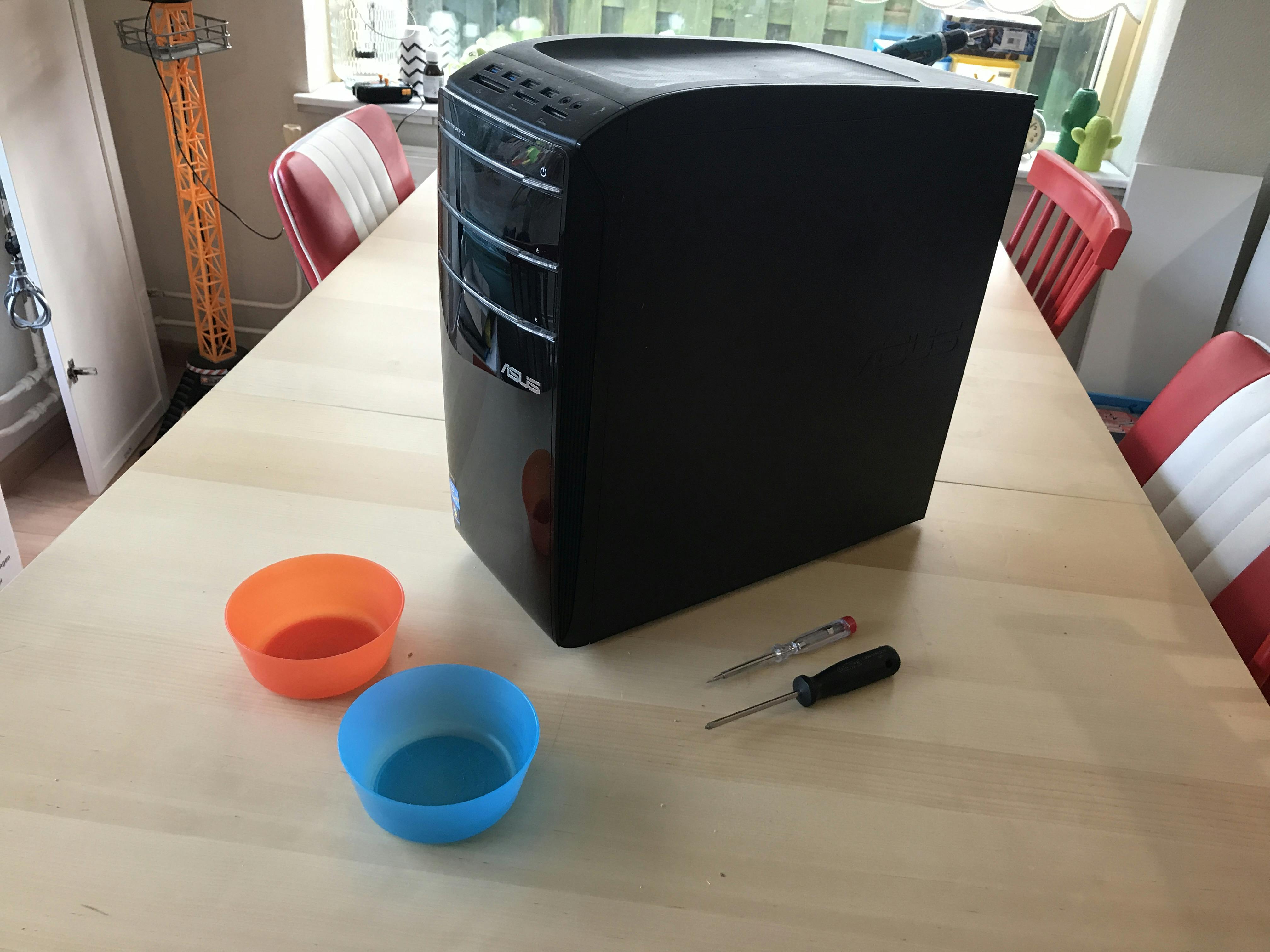 Gaan we dan nu eindelijk een component vervangen? Bijna: er is nog één stap die we eerst moeten uitvoeren. In een ideale wereld maak je namelijk regelmatig je computer schoon – vanbuiten én vanbinnen. In werkelijkheid doet bijna niemand dat, ook al is dat wel degelijk noodzakelijk. Stof aan de binnenkant van de systeemkast kan er bijvoorbeeld voor zorgen dat de koeling enorm veel herrie maakt, of erger nog: dat de ventilatoren van je koeling verstopt raken en niet meer draaien. In dat geval kan de temperatuur in je systeemkast zo hoog oplopen dat componenten onherstelbaar beschadigd kunnen raken. Het is natuurlijk niet de bedoeling dat je met je stofzuiger door je systeemkast gaat lopen raggen; daar kun je gewoon een busje perslucht voor kopen. De eerlijkheid gebiedt ons echter te zeggen dat we hier echt weleens de stofzuiger voor gebruiken. Die is immers geschikt om grote dotten stof mee weg te zuigen, als je er maar voor zorgt dat je wegblijft van de componenten, kabeltjes enzovoort, want die kunnen natuurlijk niet zo goed tegen de zuigkracht van je stofzuiger.