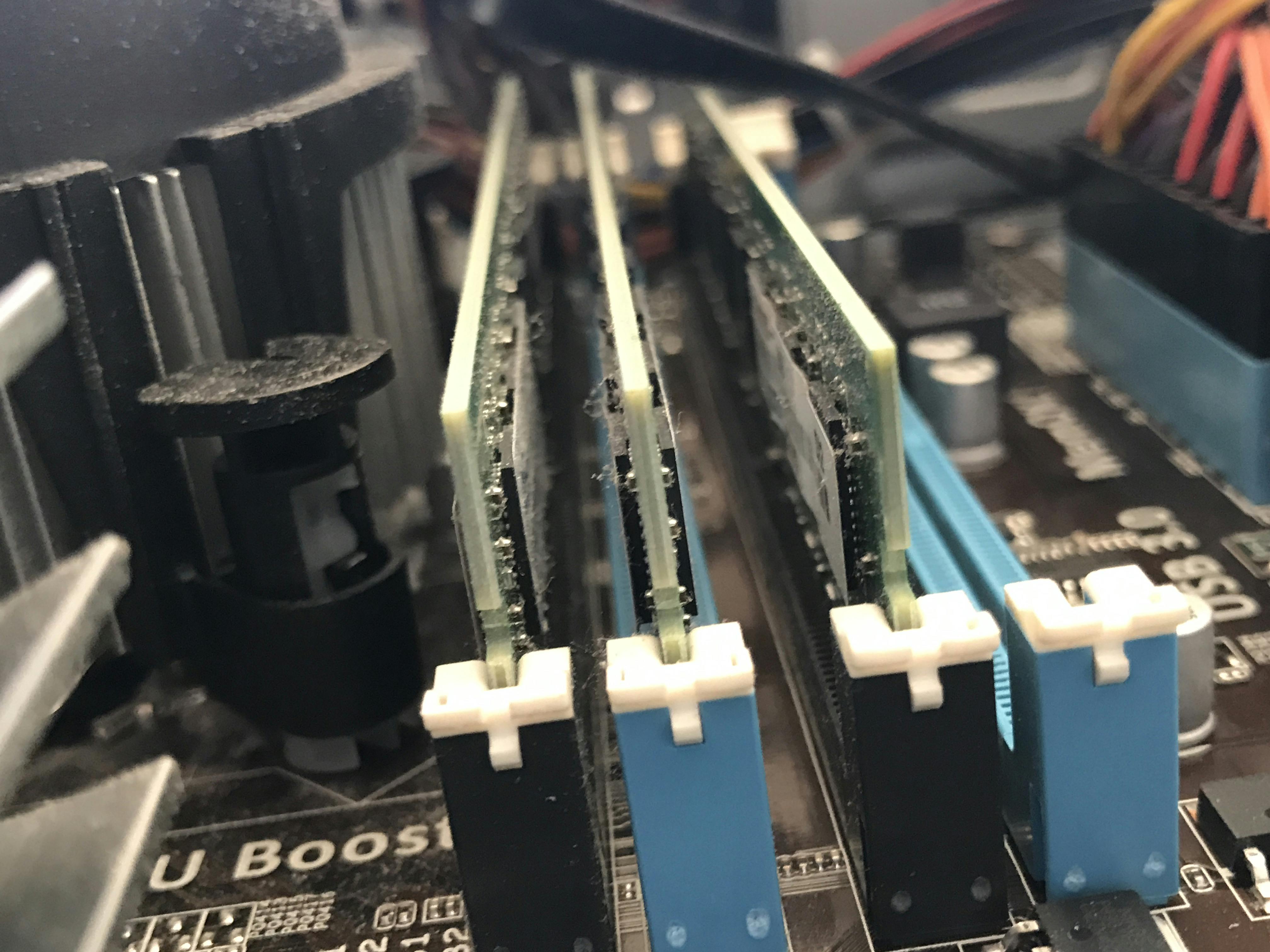 Het plaatsen van een nieuwe geheugenmodule is niet zo ingewikkeld als het lijkt. Vlak bij je processor zie je een aantal sleuven, waarvan er één of meer al zijn voorzien van een geheugenmodule. In sommige gevallen vervang je die module, in andere gevallen plaats je er één of meer bij (dit hangt af van je systeemconfiguratie: lees hiervoor de handleiding of vraag het de speciaalzaak). Om een module te verwijderen, klik je de plastic klemmetjes aan beide zijden open en trek je de module er voorzichtig uit. Om een module te plaatsen, zorg je ervoor dat de metalen contactpunten precies uitlijnen met de sleuven en duw je de module er stevig in (niet met geweld). Daarna klik je de klemmetjes weer vast om de module te vergrendelen.