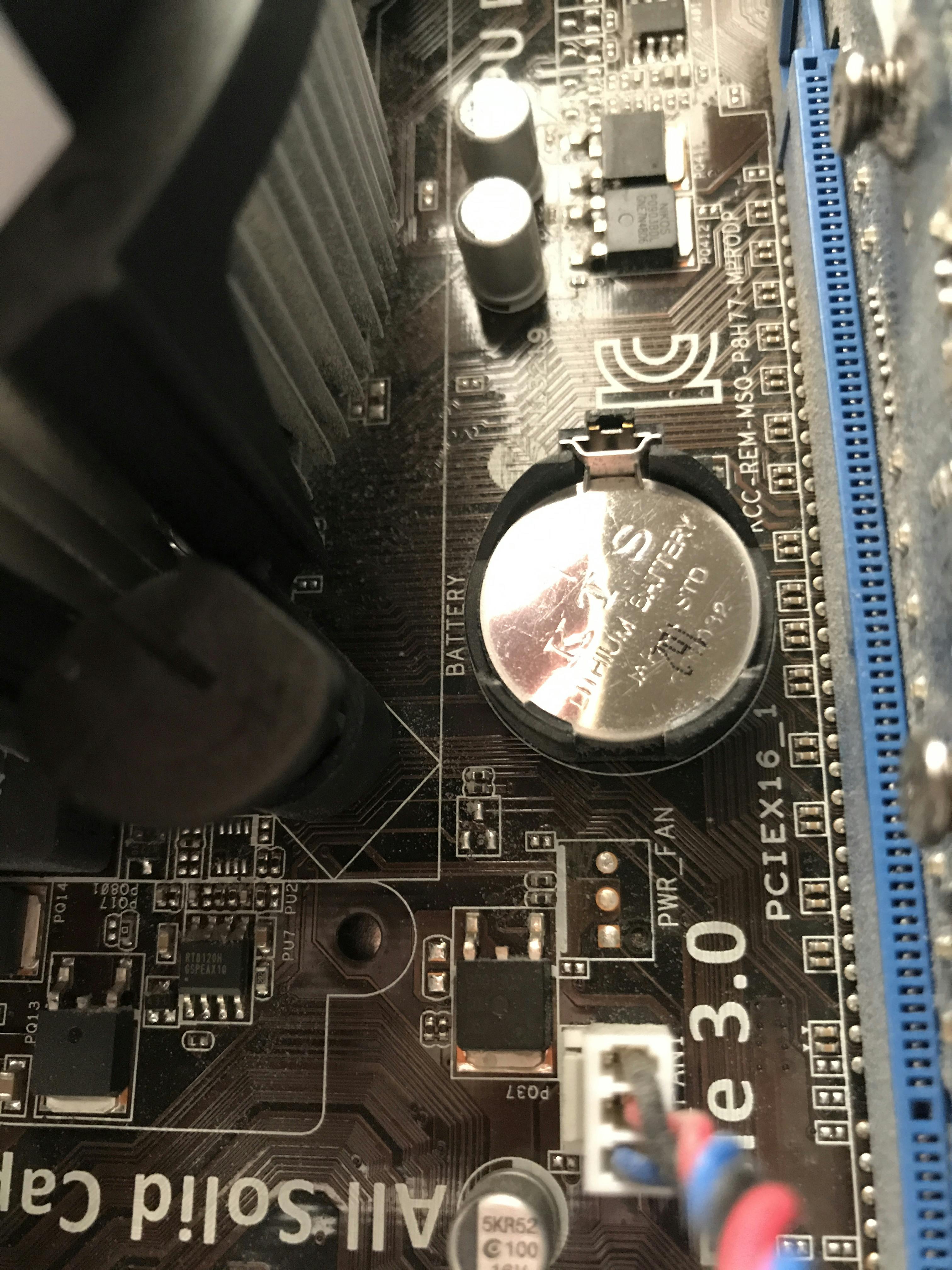 We hebben aangegeven dat we het moederbord zelf deze keer met rust laten, maar er is een onderdeel van het moederbord dat je in sommige gevallen wél moet vervangen, en dat is de knoopcelbatterij. Deze batterij kan leegraken en dat betekent dat je computer basale dingen als datum en tijd niet meer kan onthouden, en dat kan voor problemen zorgen. Gelukkig is die batterij echt heel makkelijk te vervangen. Je spot hem vrij eenvoudig op je moederbord, want het is een gewone knoopcelbatterij, zoals je die ook in je thermostaat en andere huishoudelijke apparaten vindt. Verwijderen gebeurt op precies dezelfde manier: zonder geweld en met beleid. Overigens hoef je niet heel krampachtig te doen met het vasthouden van de batterij. Het is een fabeltje dat hij dan in een paar seconden leegloopt. In theorie gaat er inderdaad energie verloren, maar dan moet je de batterij maanden non-stop tussen duim en wijsvinger vasthouden.