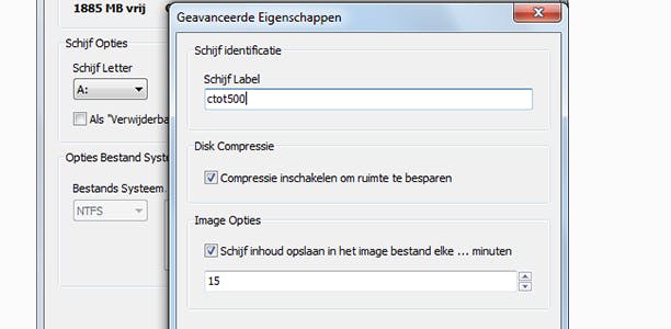 Enkele meer geavanceerde opties: schijfcompressie en automatische opslag naar imagebestanden.