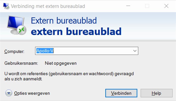 Helaas is Extern Bureaublad niet beschikbaar voor elke Windows-editie. Het is mogelijk alleen verbinding te maken met een pc als deze tenminste een Pro-editie van Windows draait, dus Windows 7 Professional, Windows 8.1 Professional of Windows 10 Pro. Met de Home-edities is het wel mogelijk om verbinding te maken met een pc die op een Pro-editie draait, maar het is dus niet mogelijk om op een pc met een Windows Home-editie op afstand je aan te melden. Daarvoor kun je beter aan de slag met TeamViewer op Windows.