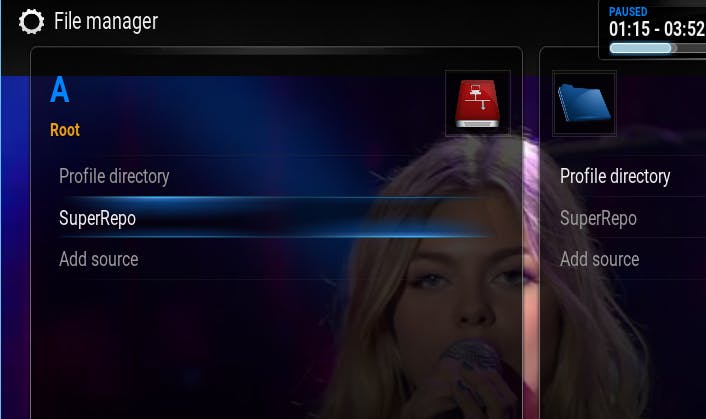 Nu je een koppeling hebt gemaakt naar de repository van SuperRepo, kun je de repo gaan downloaden. Ga naar System en kies voor Settings. Klik vervolgens aan de linkerzijde op Add-ons. In het Add-ons-scherm kies je vervolgens voor Install from zipfile. Je hoeft hier geen lokaal zipbestand te selecteren, maar dat kan wel als je eerder handmatig een repo hebt gedownload. In ons geval kiezen we echter voor de locatie SuperRepo in het stationsletterscherm.