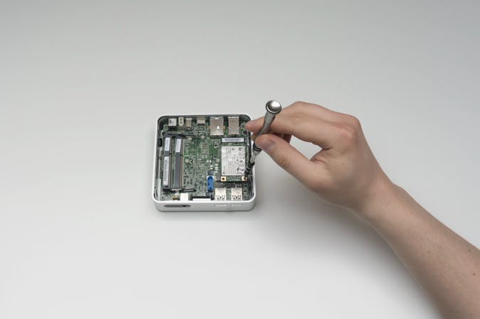 Met een Intel NUC haal je een basis-pc in miniformaat in huis. Afhankelijk van welk type je hebt uitgekozen, voeg je hieraan zelf een 2,5inch-schijf, SSD, M.2-SSD of mSATA-SSD toe. Kies verder ook het juiste geheugen dat compatibel is met jouw mini-pc. Kijk hiervoor goed in de specificaties van de Intel NUC welk type je precies nodig hebt. Zo kunnen de nieuwste Skylake NUC's bijvoorbeeld overweg met M2-SSD en DDR4L-geheugen, maar dat geldt niet voor de iets oudere producten. Sommige NUC's missen een wifi-adapter, dus die zou je dan eventueel nog kunnen toevoegen. De montage van de onderdelen gaat als volgt:
